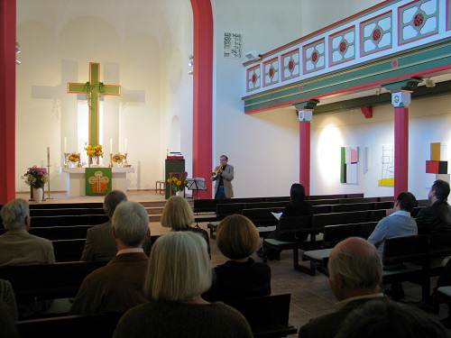 Auf der Vernissage, die musikalisch von Günter Zech auf der Trompete mit Stücken von Johann Sebastian Bach und Fryderyk Chopin untermalt wurde, stand die Künstlerin den Besuchern bei Fragen zu ihren Gemälden zur Verfügung.